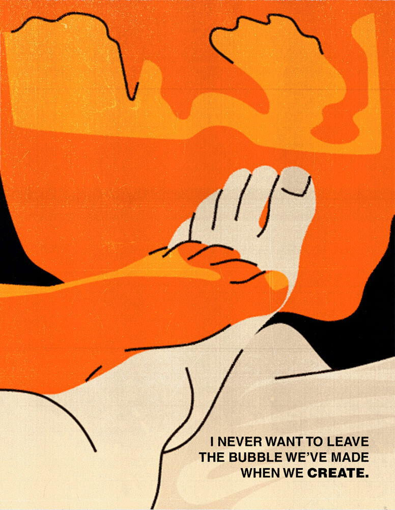 De una serie de fotografías a una de ilustraciones. El texto son partes de la canción